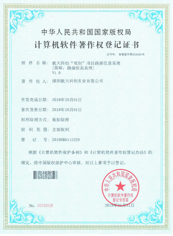 近日,小微企业服务平台中的航天科创“双创”服务体系展示系统V1.0与航天科创“双创”项目路演信息系统V1.0(以上简称“两个系统”)均获得中华人民共和国国家版权局《计算机软件著作登记证书》。