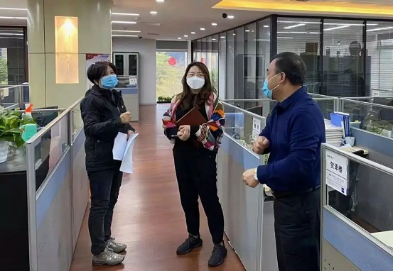 检查中,刘浩强调,复工后一定要将疫情防控工作放在首位,在确保安全的情况下力所能及地开展业务;复工单位一定要压实责任,将各项复工保障措施落实到位;要加强对居家隔离的单身员工的关怀,在生活上给予帮助,同时对远程办公的员工要加强考勤,严肃工作纪律,确保各项任务顺利进行。