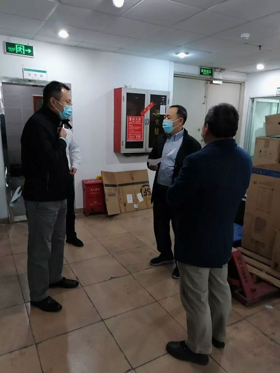 在听取了两家单位负责人对单位防疫检查措施、物资储备与管理、复工情况作出的整体报告后,刘浩、孙建航一行深入办公区、防控工作点进行了现场检查,并提出指导意见。