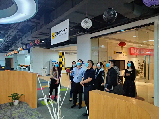 调研中,环球易购公司副总裁何谷、总经理杨昆详细介绍了该公司的发展历程和商业模式,并带领参观了智能家居、安防、服饰等线上销售爆款,展示了其在跨境供应链服务、品牌孵化与创新等方面的实力和成果。