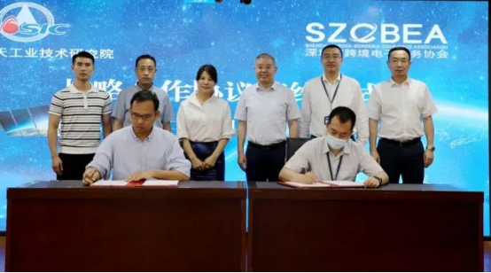 5月30日,航天工研院与深圳市跨境电子商务协会(以下简称深跨协)签署战略合作协议。航天工研院党委书记、董事长刘浩,副总经理丁成,航天工研院对外合作部、航天科创、航天广宇、天浩公司有关人员参加会议。深跨协执行会长王馨,副秘书长兼会长助理叶俊杰,副秘书长兼研究院执行院长邢康男出席。航天工研院对外合作部与深跨协研究院分别代表双方单位签署协议。