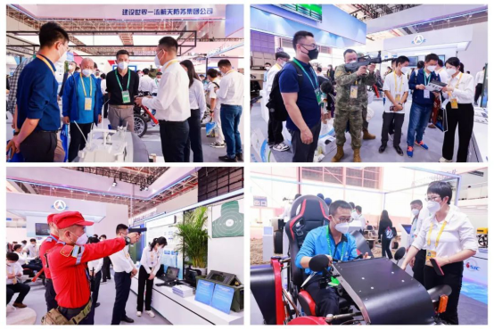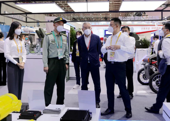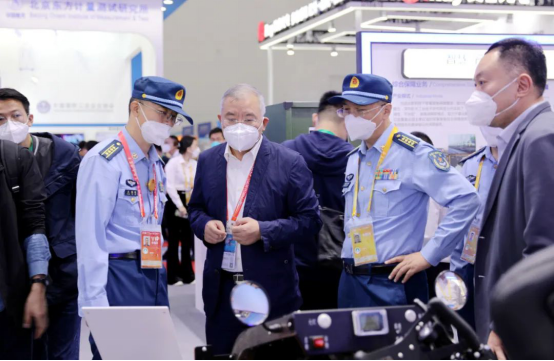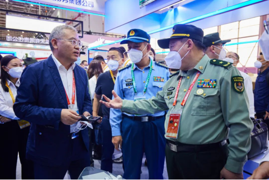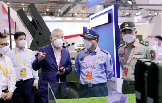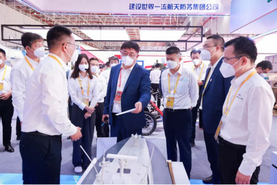 航天工研院党委书记、董事长刘浩,总经理、党委副书记姜福灏,党委委员、副总经理王洁刚,党委委员、总会计师李步青,党委委员、副总经理刘春利,党委委员、副总经理丁成在展台向观展领导讲解和推广参展产品。