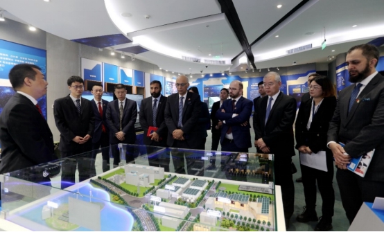 莫因·哈克一行参观了航天工研院展厅,在展厅里首先听取了中国航天科工的相关介绍,详细了解中国航天科工五大支柱产业和民用产品的情况,重点参观了航天工研院的绿色智慧能源系统和无人装备体系。莫因·哈克一行对智慧综合能源管理系统、微电网系统光伏储能微电网解决方案、无人装备空海协同巡航搜救一体化系统、“海霹雳”通用型多功能水面无人艇等产品和方案表示了浓厚的兴趣,频频提问探讨,现场气氛热烈。