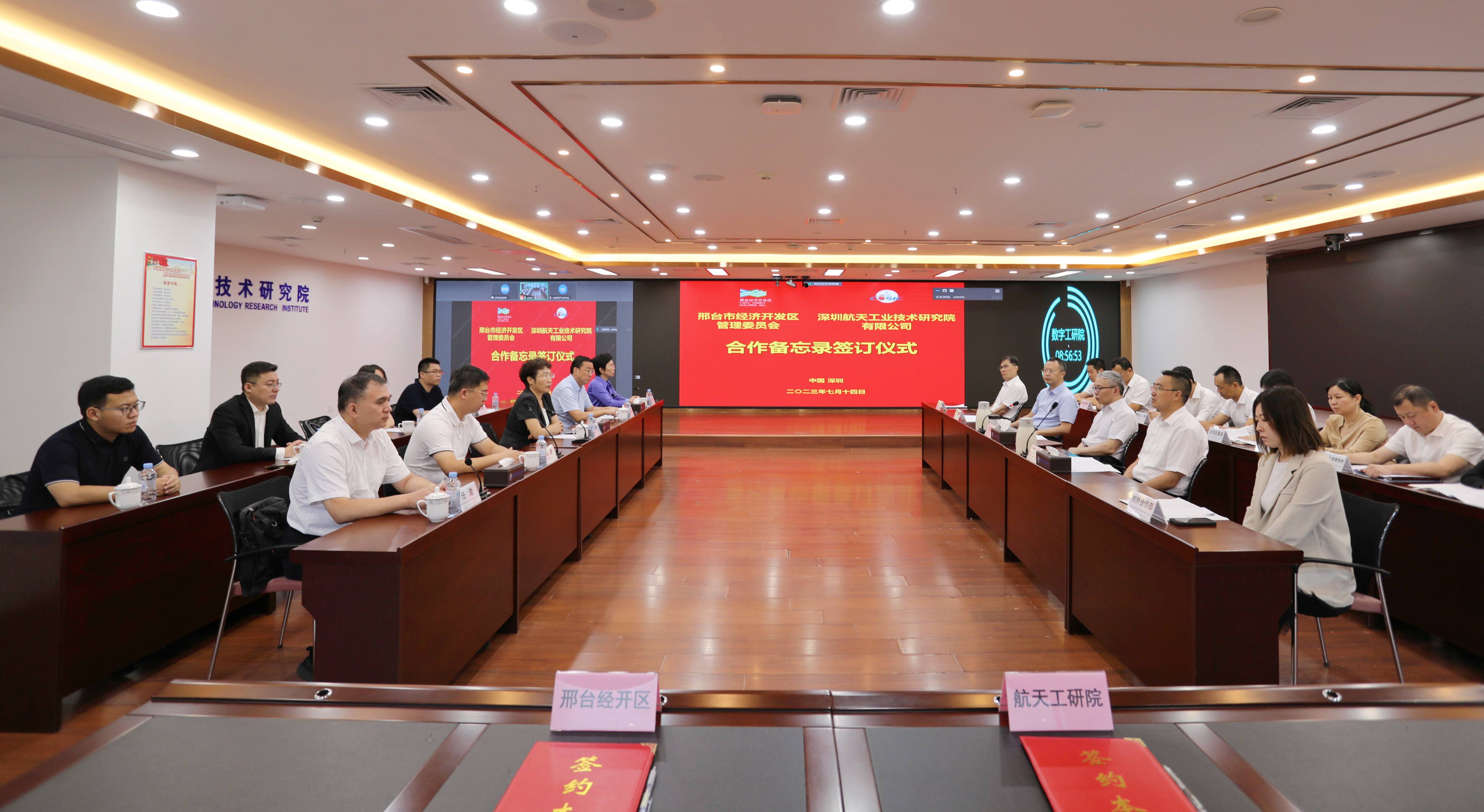 7月14日,航天工研院与邢台市经济开发区签订合作备忘录仪式在航天大厦举行,邢台市委常委、统战部部长冯亚强通过视频进行了证签,航天工研院党委书记、董事长金立亮,党委委员、副总经理丁成,邢台经开区党工委副书记、管委会主任商黎英等领导现场证签。