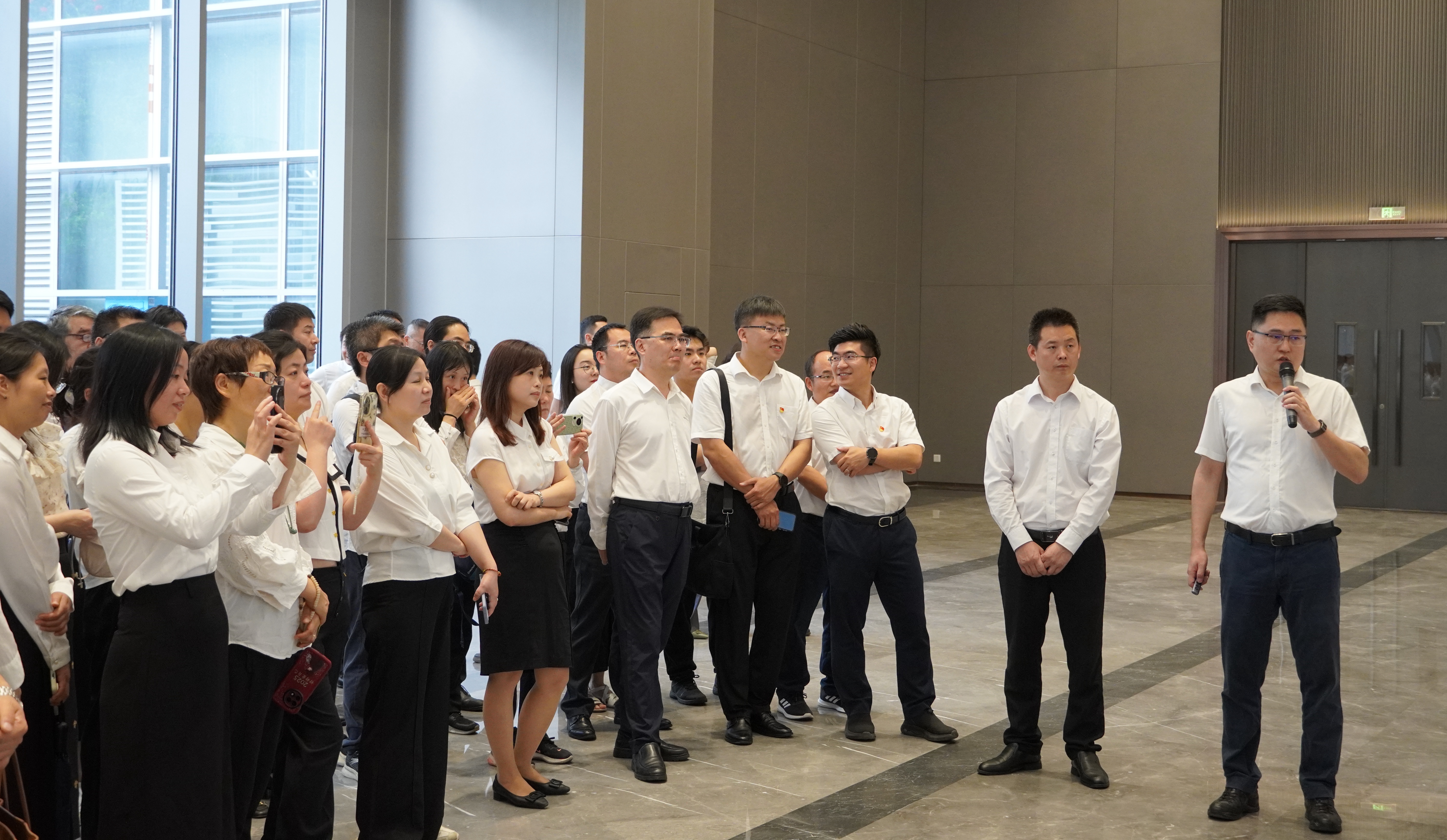 升旗仪式后,领导班子成员和干部职工参观了新落成的航天创新大厦。