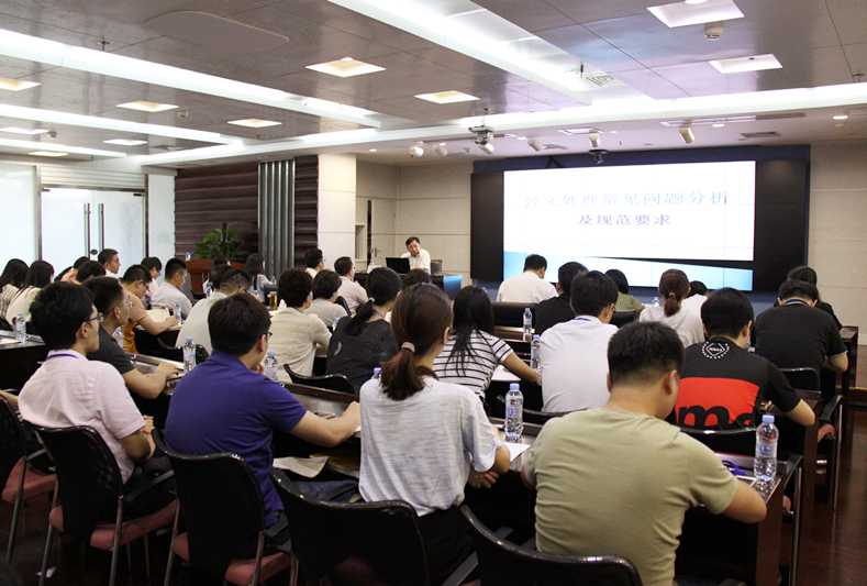 孙书记从公文的定义及公文格式、公文规范要求及常见问题分析、纸质公文办理和深圳工研院总部人员的素养能力要求四个方面进行了精彩讲解。针对公文处理的相关内容,孙书记通过详细讲解典型案例和列举公文处理中出现的实际问题,生动、详实的为参会人员讲解了实际工作中经常出现的问题,在对比常见问题的过程中,明确的讲解了公文处理工作中的规范要求。针对总部人员素质能力的相关要求,孙书记从思想政治意识、政策理论素养、业务工作能力三方面进行了详细阐述,指出了总部人员工作岗位的特殊性与重要性,强调了总部人员必须持续加强培养与锻炼的各项必备素质能力。