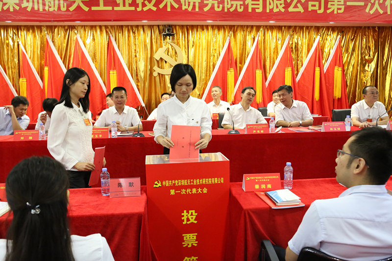 下午14点整,在庄严的国歌声中,中共深圳航天工业技术研究院有限公司第一次代表大会隆重开幕。会议由大会执行主席栾聚宝同志主持。大会听取了深圳工研院临时党委书记崔玉平同志所作的题为《双建双促,落细落实,努力开创深圳工研院转型发展新局面》的临时党委工作报告和临时纪委书记孙建航同志所作的题为《严肃党规党纪,聚焦主责主业,为深圳工研院转型发展提供坚强保障》的临时纪委工作报告,并审议通过了工作报告的决议。大会经过民主选举产生了由文晓林、孙建航、李步青、宋友军、栾聚宝、崔玉平、詹毅超组成(按姓氏笔画排序)的深圳工研院第一届党委和由孙建航、苏衍彬、宋汉华、胡芳娅(女)、梁秀(女)组成(按姓氏笔画排序)的深圳工研院纪委。