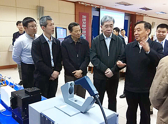 在参观探月工程成果转化产品时,王晨副委员长对近红外光谱食药品检测仪给予了高度关注,说这次调研的起因正是这个项目。他详细询问了食药品光谱仪国内外技术发展、应用情况,产品亮点、成果转化进展等情况。探月三期总师胡浩、上海技术物理研究所副所长舒嵘、深圳航天工业技术研究院副总经理文晓林分别回答了相关问题。文副总特别向王晨副委员长一行介绍了深圳航天工业技术研究院和探月中心、中科院,就该项目研制转化、产业化安排、产品低成本、系列化、小型化策划,并针对该项目如何充分利用航天工业互联网平台使食药监实现网络化检测、多模式运作、大数据建模、开展航天食药监云服务,表示开始将直接从老百姓关注的奶粉与酒类进行市场与产业化切入,服务国家与民生。