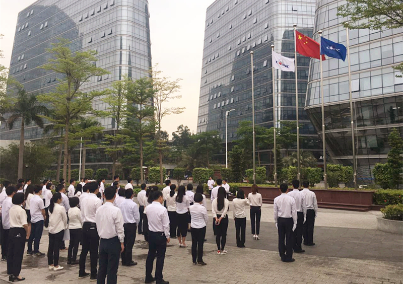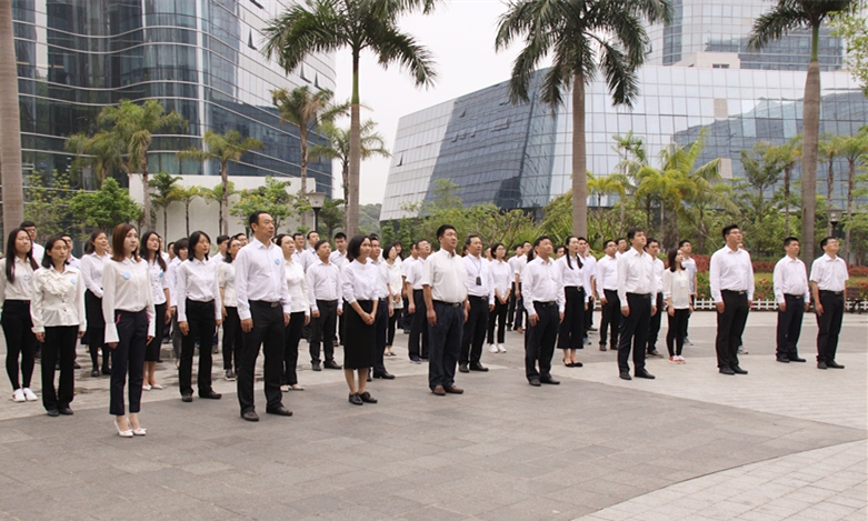 在深圳工研院临时党委领导与员工的注目下,鲜艳的五星红旗伴随着雄壮的国歌声冉冉升起。