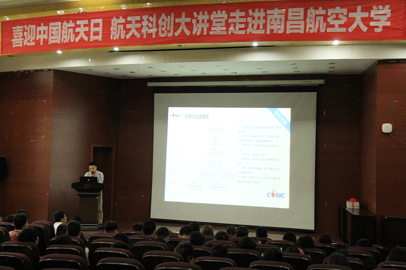 4月21日,在第二个中国航天日到来之际,由江西国防科工办担任指导,由国家级创新创业示范基地航天科工江西科技创新服务中心(以下简称“江西科创中心”)同南昌航空大学共同主办的航空航天科创大讲堂在南昌航空大学举行。江西科创中心邀请航空航天领域专家向大学生们宣讲了航空航天发展历程及航天精神文化。