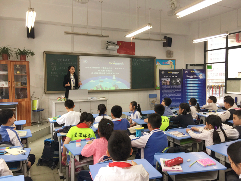 4月24日,在第二个“中国航天日”当天,“航天科普知识”走进了深圳市南山区学府小学,这是深圳工研院庆祝“中国航天日”系列活动之一的“航天科普知识进校园”活动,受到广泛欢迎。