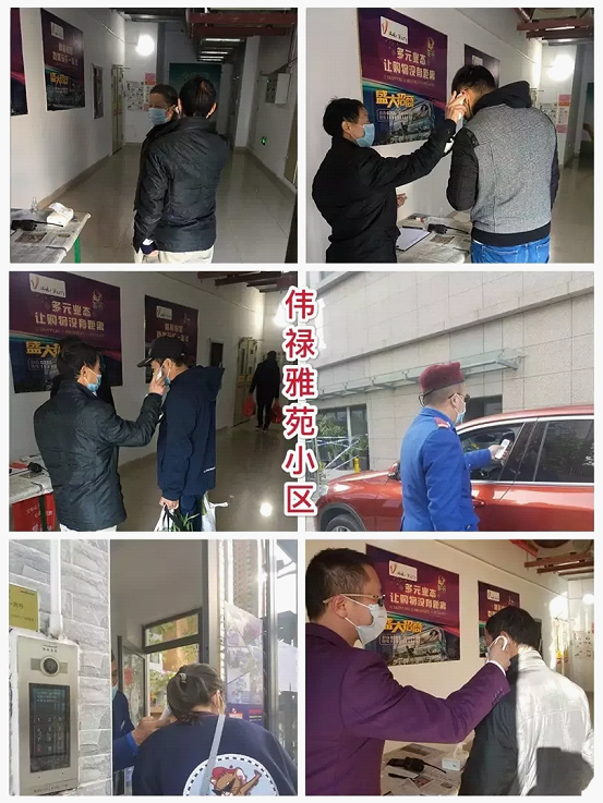 伟禄雅苑物业管理处购置专业体温测量仪器,在小区各个出入口设点检测体温健康。