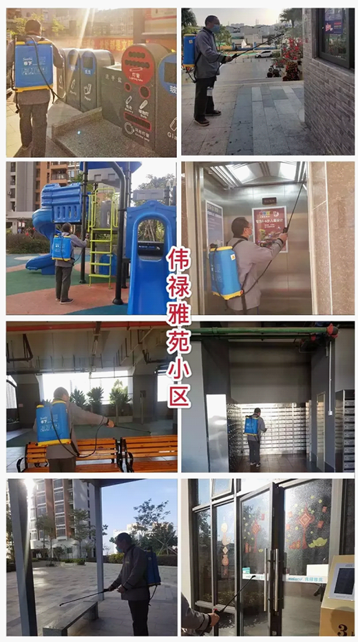 物业管理人员对小区花园、游乐设施、垃圾投放点等公共区域进行多频次严格消毒消杀,消除卫生死角。