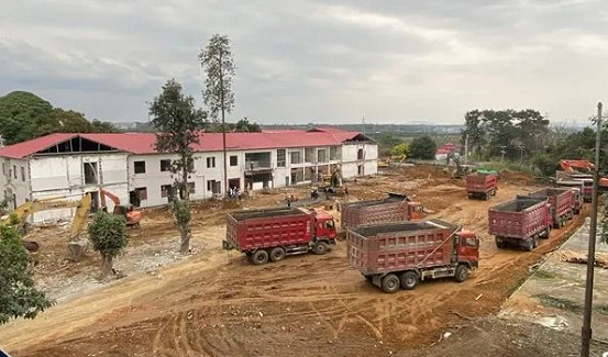 百色市传染病医院项目位于广西壮族自治区百色市田东县祥周镇新州村,是在原市右江矿务局医院基础上改造扩建的新冠肺炎定点收治医院,被称为广西版“小汤山医院”。目前项目正开足马力,火速建设中。