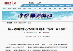 与众多制造业企业一样,航天亮丽在春节前接了不少订单,3月前就要交付价值一笔价值5千余万元的订单。受疫情影响,春节后公司复产按下了“暂停键”,多亏工厂长期的智能化改造,少量工程师、辅助操作工返厂复工后,生产线就满负荷运转起来,开足马力完成节前的订单任务,尽可能将失去的时间抢回来。