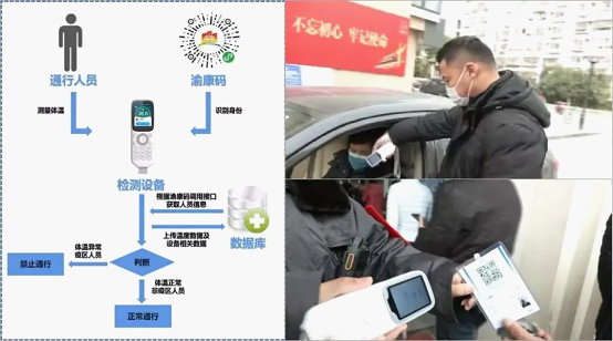 由重庆科创公司联合其战略合作伙伴重庆宏火实业有限公司(以下简称“重庆宏火”)共同研发完成的渝康码健康特征采集平台是“渝康码”的数据来源之一。平台是通过云计算、物联网技术和热成像技术打造的集身份认证、体温检测、数据实时监控等多种功能为一体的智能化平台,能兼容多种前端测温设备,可通过测温设备采集人员健康数据,并上传至“渝康码”数据库内,以助力疫情防控期间实现全民个人健康轨迹跟踪。