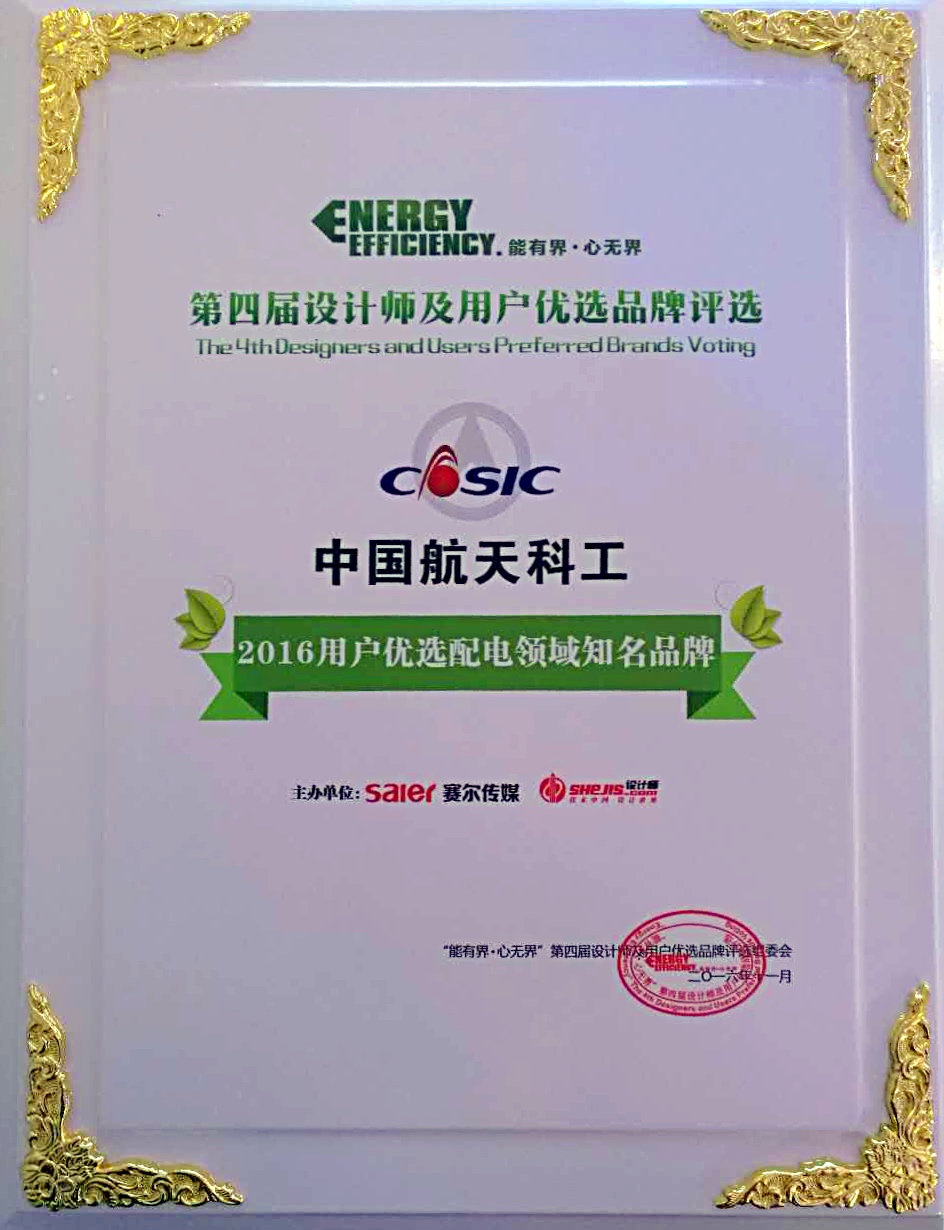 11月1日,由赛尔传媒主办的以“低碳、匠心、传承——相信品牌的力量”为主题的“能有界•心无界”来客易杯第四届设计师及用户优选品牌评选活动完美收官,这是中国电气行业的一次大阅兵。本次活动采用用户深度参与以及实名投票的方式,评选出“十大电气品牌”、“诚信企业”等14项大奖。 航天科工作为配电领域主流厂商和知名企业受邀出席了本次论坛,并荣获“2016电气行业配电领域优选知名品牌”、“重合同守信用”诚信企业称号,在配电领域厂家中脱颖而出。