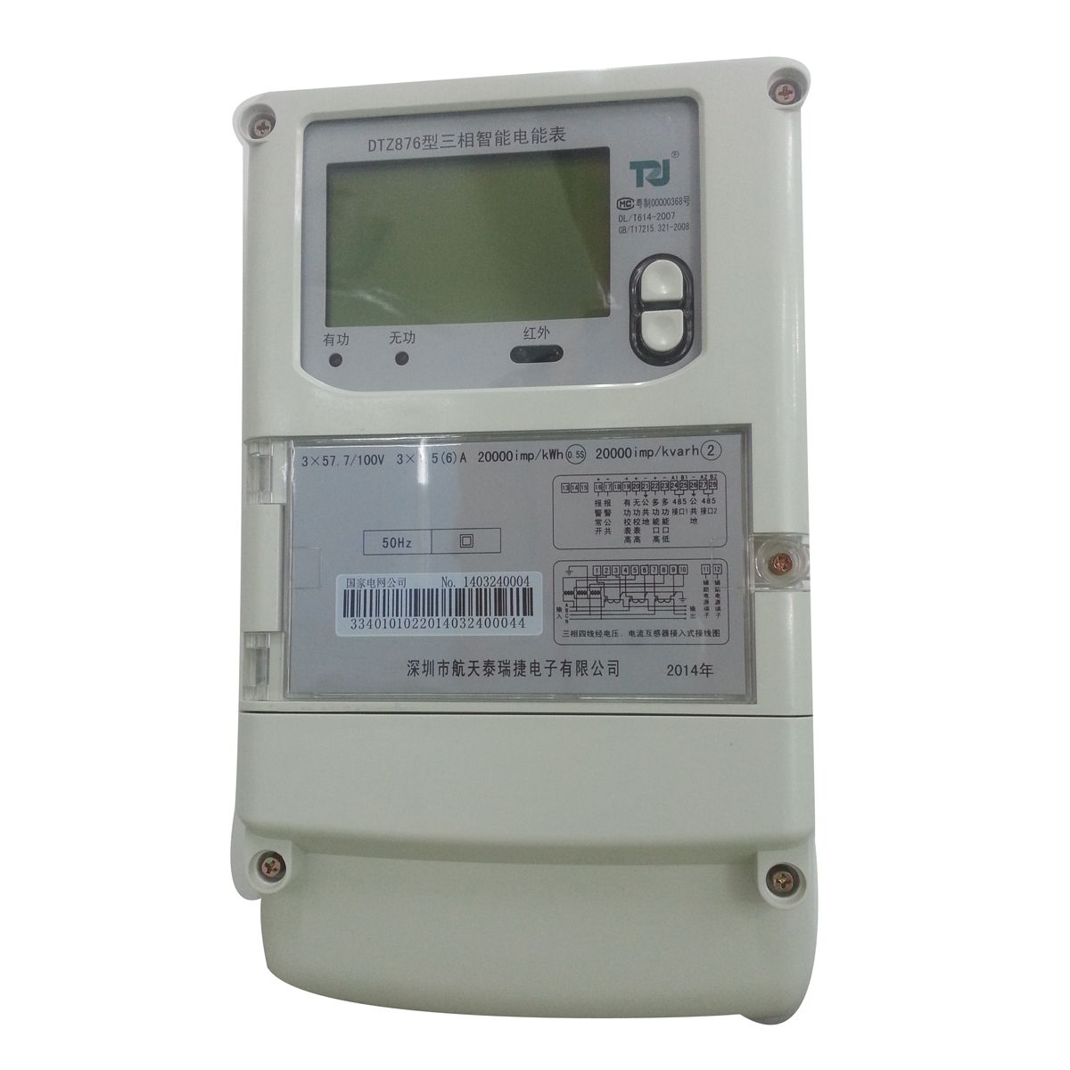一、 产品简介 产品型号:DTZ876/DSZ876三相智能电能表 精度等级:有功 0.2S级 无功2级 额定电压: 3×100V 3×57.7/100V 3×220/380V 额定电流: 0.3(1.2)~5(60)A 频 率:50Hz 工作温度: -40℃~+70℃ 显示方式: 液晶 重量: 约2.4kg 外形尺寸: 290mm×170mm×85mm 1产品介绍 DTZ876/DSZ876三相智能电能表采用了大规模集成电路,使用了高精度的电能计量专用芯片,并应用数字采样处理技术及SMT工艺,根据工业用户实际用电状况所设计制造的具有现代先进水平的仪表。 该表性能指标符合GB/T 17215.321-2008《交流电测量设备 特殊要求第21部分:1级和2级静止式有功电能表》、GB/T17215.322-2008《交流电测量设备 特殊要求第22部分:0.2S级和0.5S级静止式有功电能表》、GB/T17215.323-2008《交流电测量设备 特殊要求第23部分:2级和3级静止式无功电能表》和DL/T 614–2007《多功能电能表》标准,其通信符合DL/T645–2007《多功能电能表通信协议》的要求,可根据功能定制需求符合多功能电能表的各项技术要求。售电系统主站与电能表数据交互的安全性和完整性由严格的安全认证来保障,安全认证所涉及的数据结构和操作流程符合Q/GDW 1365-2013《智能电能表信息交换安全认证技术规范》对费控电能表的各项技术要求。