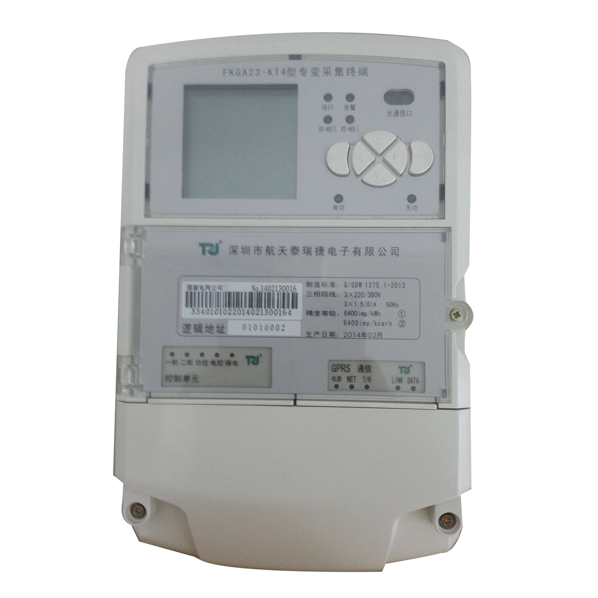 FKGA23/ FKCA23-KT4/KS4系列智能专变采集终端是适应电力需求侧管理现代化的要求,结合在电力行业多年的设计开发和现场运行经验,基于嵌入式软硬件开发平台而专门设计的新一代用电管理终端。采用了微电子技术、计算机芯片技术、现代通信技术等当今最先进的技术,支持GPRS/GSM/CDMA等公用无线通信网络技术。可安装在大中小型专变用户侧或三相一般工商业用户侧等,通过与电力用户用电信息采集系统配合使用,可实现自动抄表、对电力用户的负荷监测与控制、预付费管理、电能质量管理、防窃电、异常告警等功能。广泛的适用于用电现场服务与电力负荷管理系统,是电力营销自动化系统中具有较高实用价值的终端产品。