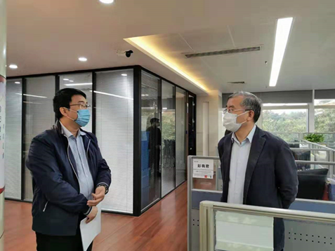 李奕男现场向航天工研院党委书记、董事长刘浩汇报防疫落实情况